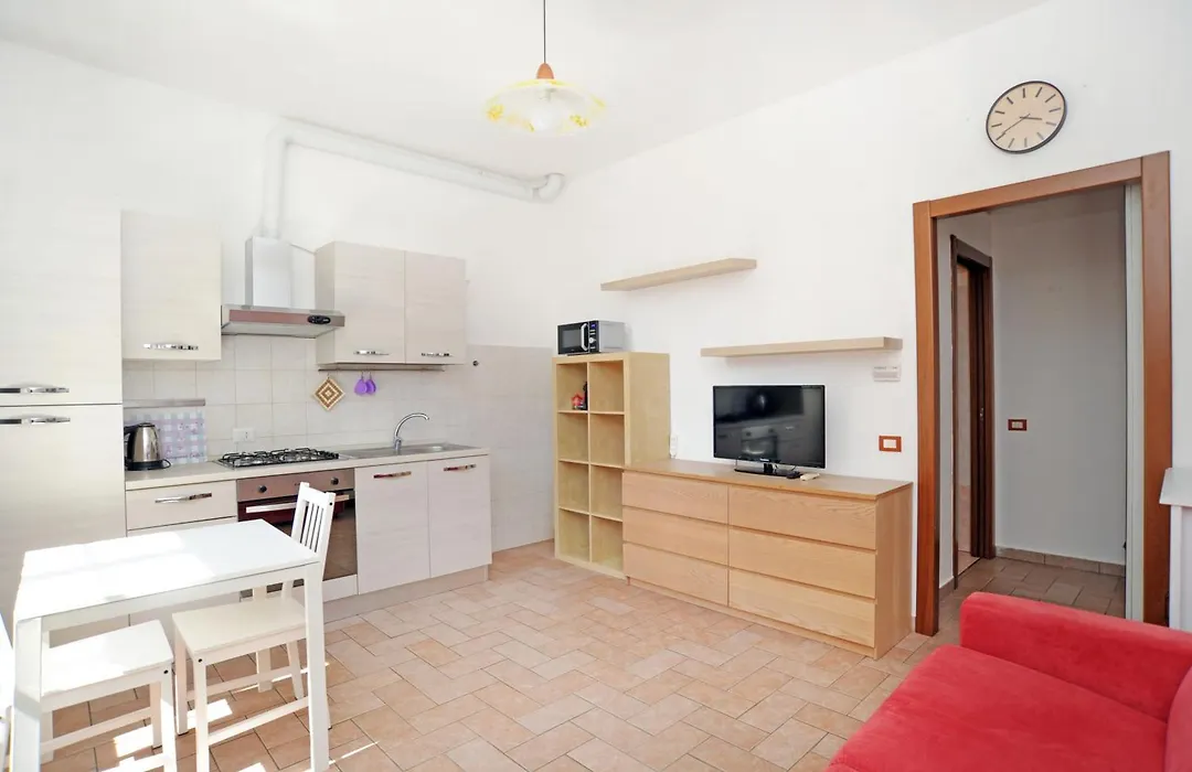 There is a fully furnished kitchen equipped with a refrigerator and an oven. This apartment is about a 20-minute walk from Arca di Noe, a place to dine at.